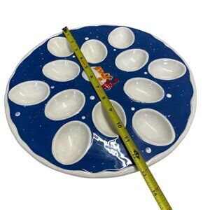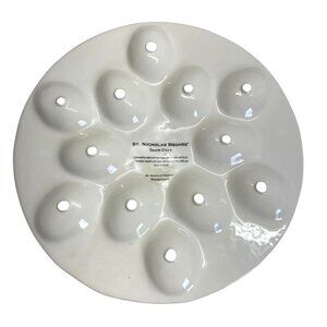 Serve your holiday treats in style with the St. Nicholas Square Snow Days Deviled Egg Plate. This festive ceramic platter features a charming snowman design, perfect for adding a cheerful touch to your Christmas gatherings. With 12 designated spots, it securely holds deviled eggs or other appetizers for easy serving.