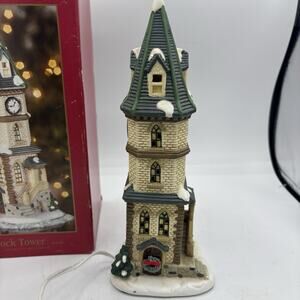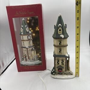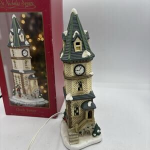 St Nicholas Square Village Collection 1998 Clock Tower Illuminated Lighted Vtg