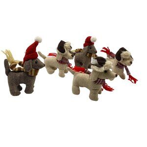 St Nicholas Square plush Christmas tree dog ornament set tweed Herringbone brown