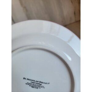 This festive St. Nicholas Square plate features a charming snowman design with red, white, and green accents. It measures 10 inches in diameter, making it ideal for serving holiday meals or desserts. Crafted from durable ceramic, it brings a whimsical touch to any seasonal table setting.