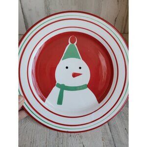 St. Nicholas Square Christmas Snowman Plate 10" Ceramic Holiday Dinnerware Red & White