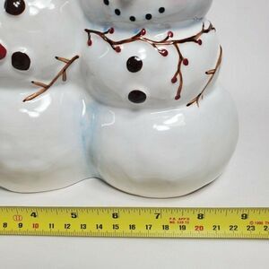 This is a large St. Nicholas Square - WARM WISHES - Snowman Family Cookie Jar 12".