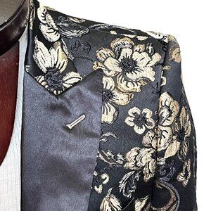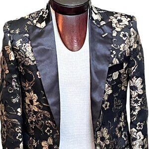 This blazer offers a sleek slim fit with an elegant black and gold floral design, suitable for formal events or stylish evenings. Metallic thread design. Sure to get you noticed!!!!!