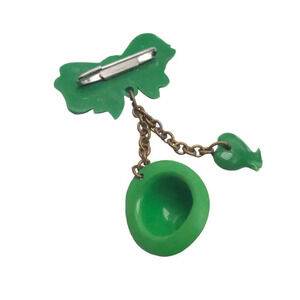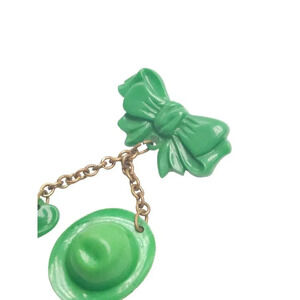 St. Patrick's Day Green Shamrock Leprechaun Hat Bow Brooch Pin VTG