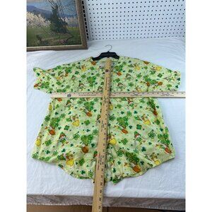 St. Patrick’s Day Green Shirt XL Button Front Shamrock Clover Print Irish Tee