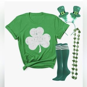 Celebrate in style with this green shamrock t-shirt and matching accessories. Perfect for festive occasions.