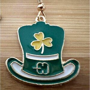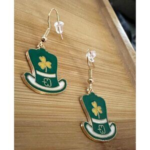 St Patricks Day Leprechaun Hat Earrings Shamrock Green Dangle Hooks New…