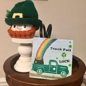 Celebrate St Patrick’s Day with this wooden sign handmade by me! Features a green farm “Truck full of Luck” & a hand-painted glittery rainbow leading to the pot o’ gold!