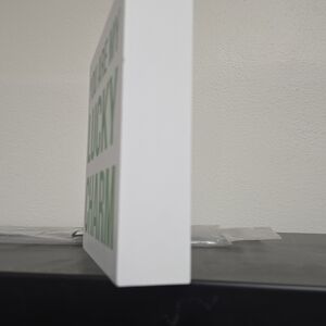 New wood white sign, green font YOU ARE MY LUCKY CHARM. MEASURING 6"X6". Stand on it's own
