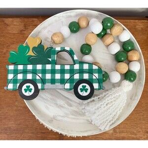 St Patrick’s Day Truck Tiered Tray Decor, St Patrick’s Day Beaded Garland Truck