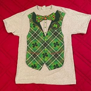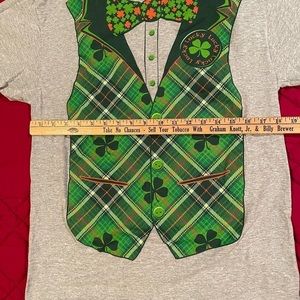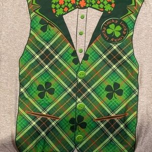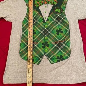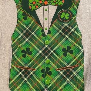 St. Patrick’s Day T-shirt with printed green plaid vest and bow tie on front M