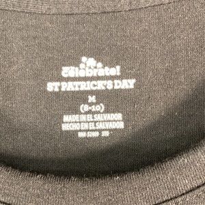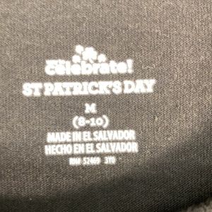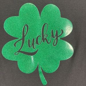 St Patrick's Day Women's Short Sleeve Top Black with Green "Lucky" Shamrock Med
