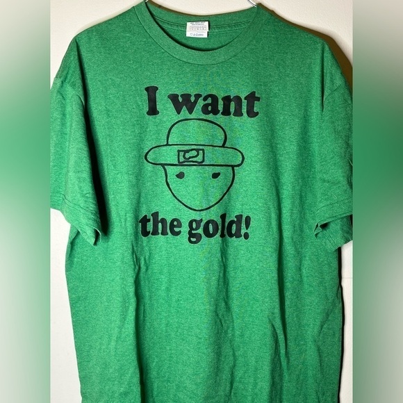 “I want the gold” funny size large green tee St. Patrick’s day tee