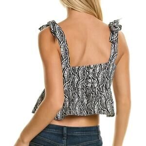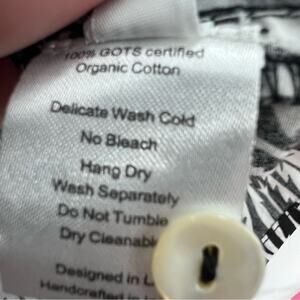 Introducing the St. Roche Anya Top, a stylish and sustainable addition to your wardrobe. Made from 100% organic cotton, this black and ivory top features a chic tie shoulder design with a feminine ruffle hem. The button closure adds a sophisticated touch, while the versatile color makes it easy to mix and match with your favorite bottoms. Whether you're dressing it up for a night out or keeping it casual for everyday wear, the St. Roche Anya Top is sure to become a staple in your closet. Hand wash recommended.