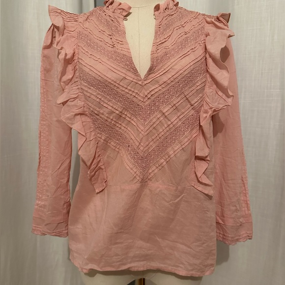 St. Roche Linde Blouse This super soft organic cotton top features delicate inset lace, pintuck details and a ruffled high neck.