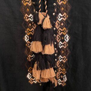 Black Cotton with Beautiful Tan, Brown and white embroidered on the sleeves and front