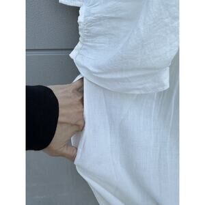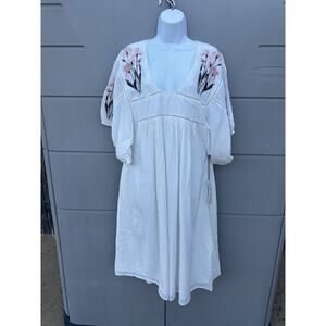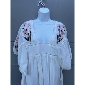 St Roche Lake Gauze Midi dress White and Pink Embroidered w/Pockets Sz M NWT