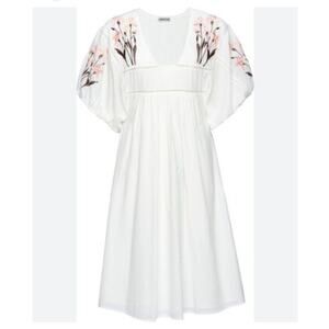 St Roche Lake Gauze Midi dress Ivory and Pink Embroidered w/Pockets Sz M NWT