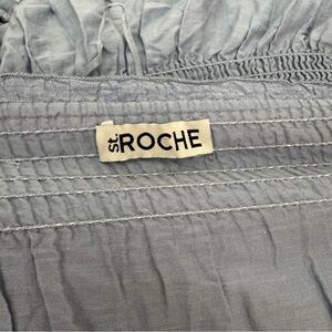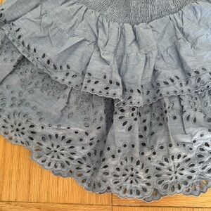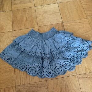 St. Roche Ruffle Embellishment Mini Skirt. Eyelet & Ruffle Accents. Elasticized Waist. Lining.