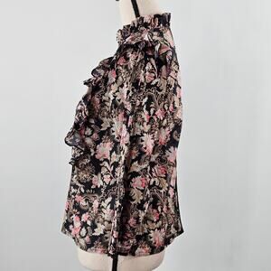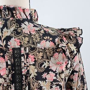 St. Roche Ruffle Lace Boho Floral Print Blouse Top | Women's Small | MINOR FLAW