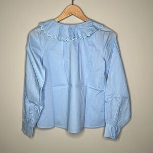 St Roche Virginia Top in Cerulean Blue Cotton Ruffled Eyelet Lace Collar NWT!