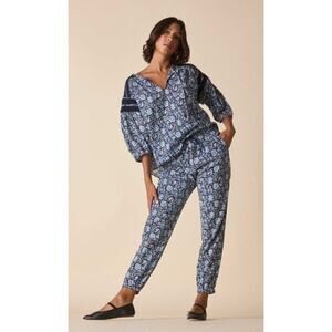 The Yucca pants are cropped and tapered, with comfortable elastic at the drawstring waistband and cuffs. Designed for a mid-rise fit, these breezy pants are made from our soft organic cotton “Beechwood”print, hand printed in Jaipur. Handloom organic cotton (no stretch) “Beachwood” hand screen print Lined in organic cotton Cropped pants with elastic waist and hems Relaxed fit, sits just below natural waist Drawstring waist Slant pockets Delicate wash cold, wash with like colors, hang to dry, do not tumble OR dry cleanable (green dry clean if possible)