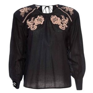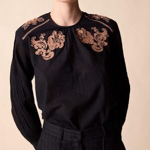 St. Roche Mortimer Blouse in Black with Camel (Gold) Embroidery. Size 4. Brand new, still in manufacturer’s packaging. New with tags!