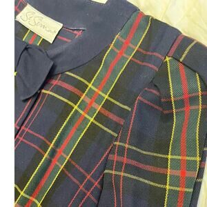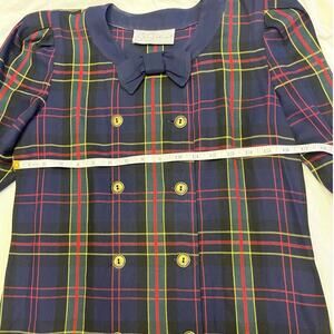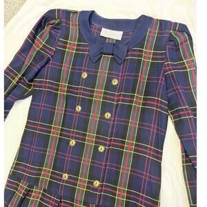 St. Simon 1980’s Vintage Tartan Plaid Midi-Dress, Size S/M Bow, Dark Academia