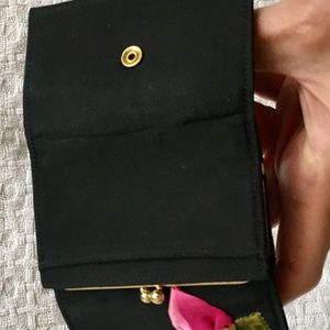 Vintage St. Thomas Black Faille Wallet with pretty rose bud, in excellent condition, only used once and looks brand new.