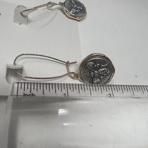 The St. Thomas Butterfly Reversible Rhinestone Earrings are a stunning accessory that features a hexagon shape design in gold and silver tones. The reversible feature adds versatility to the earrings, allowing them to be worn in different ways. The dangle/drop style adds movement and flair to any outfit, while the hoop wire closure ensures a secure fit. These earrings are perfect for those who love animal and insect-themed jewelry, and the ceramic material adds a unique touch to the design.