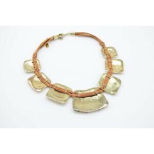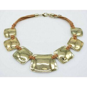 St Thomas Gold Graduated Disc Statement Necklace Cord Knotted Brown