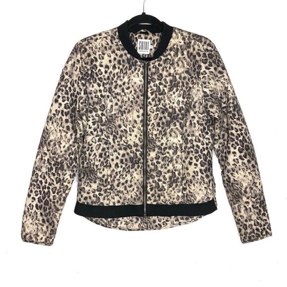 St Tropez Cheetah Leopard Bomber Jacket Quilted High Low Zip Casual