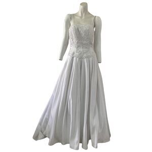 St Tropez Wedding Dress Womens S White Ballgown Beaded Bodice Tulle Train Bridal
