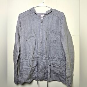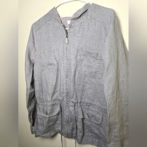 St Tropez West 100% Linen Full Zip Hooded Jacket, Size Large