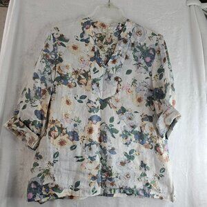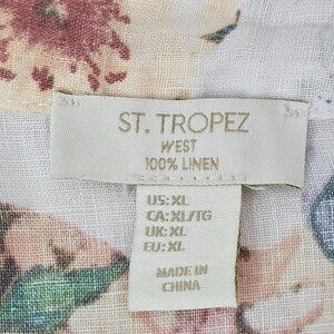 St. Tropez West 100% Linen Tunic Top Floral Size XL Flower Bohemian Pullover