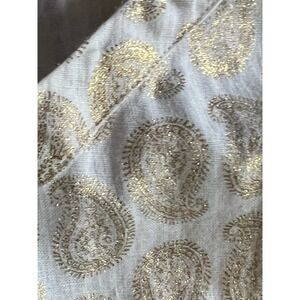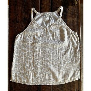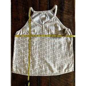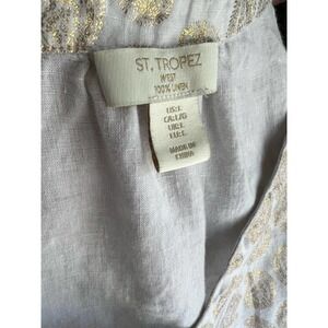 Preowned in EUC - White top with Beautiful Gold Paisley print throughout top. St. Tropez West 100% Linen Womens Sleeveless Top Size Large