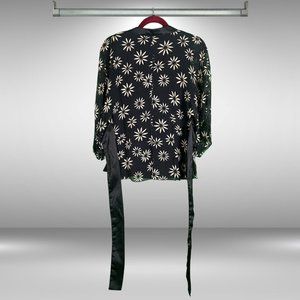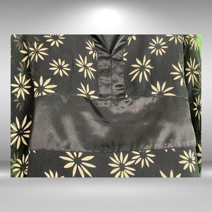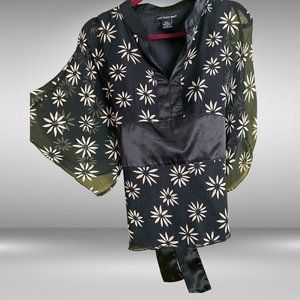 St Tropez West Black and Tan Flower Sheer Kimono Shirt w Satin Sash