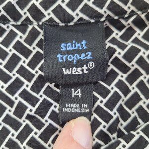 St Tropez West Dress Girls 14 Black/White Collared Button Tie Front Pocket Dress