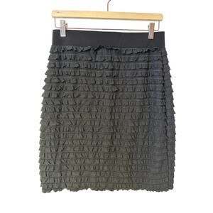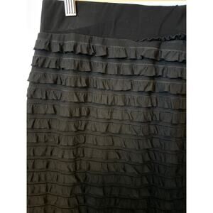 St Tropez West Knee Length Pencil Skirt Tiered Ruffles Black Pull On Size L
