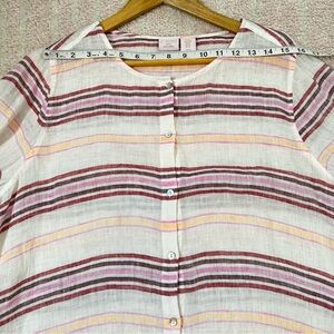 St Tropez West Linen Button-Up Tunic Blouse Top Roll Tab Sleeves XL Resortwear