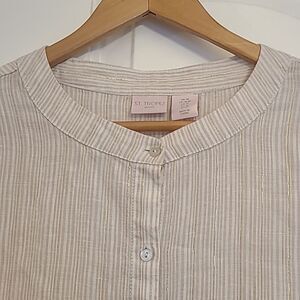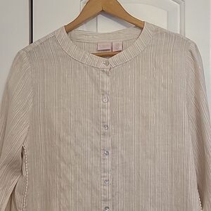 St. Tropez West Long Sleeve Button Down 100% Linen Tunic Blouse Top Size M