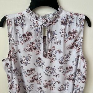 St. Tropez West Sleeveless Ruffle Tie Neck Blouse Keyhole Floral Cottagecore L