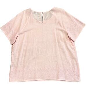 St. Tropez West Woman's Linen Eyelet Embroidered Blouse Size 1X Pale Pink