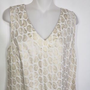 St. Tropez West Womens Tank Top Medium 100% Linen V Neck Ivory Gold Paisley