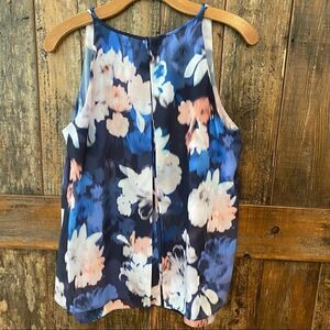 St. Tropez West Sz M Blue Blurred Watercolor Floral Flowy Relaxed Tank Style Top