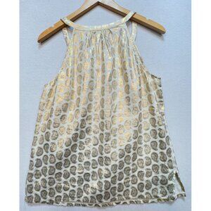 St Tropez Womens Linen West Top Lightweight Size M White Gold Paisley Sleeveless