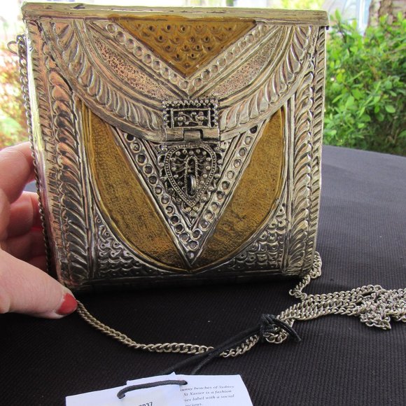 Gorgeous St. Xavier Monro Geometric Gold & Silver Metal Cross Body / Shoulder Bag