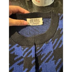 St. john for I.Magnin Vintage Blue Black Checkered Plaid Cardigan Sweater Small. Fair condition.