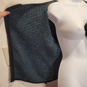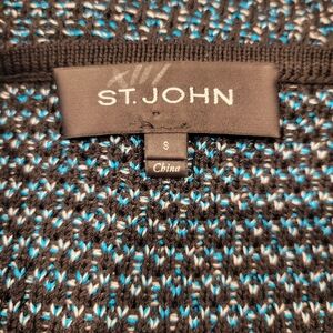 St john long sleeves black blue knit asymmetrical zip cardigan blazer jacket sweater. has marker on tag no rips or stains