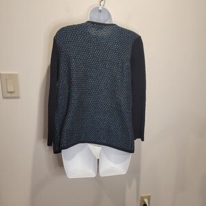 St john size 8 blue/black wool blend asymmetrical zip knit cardigan
